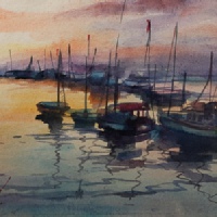 NIGHT FALLS ON A PEACEFUL HARBOR