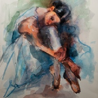 at the local University, and participating in exhibitions. In her painting she has