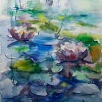 at the local University, and participating in exhibitions. In her painting she has