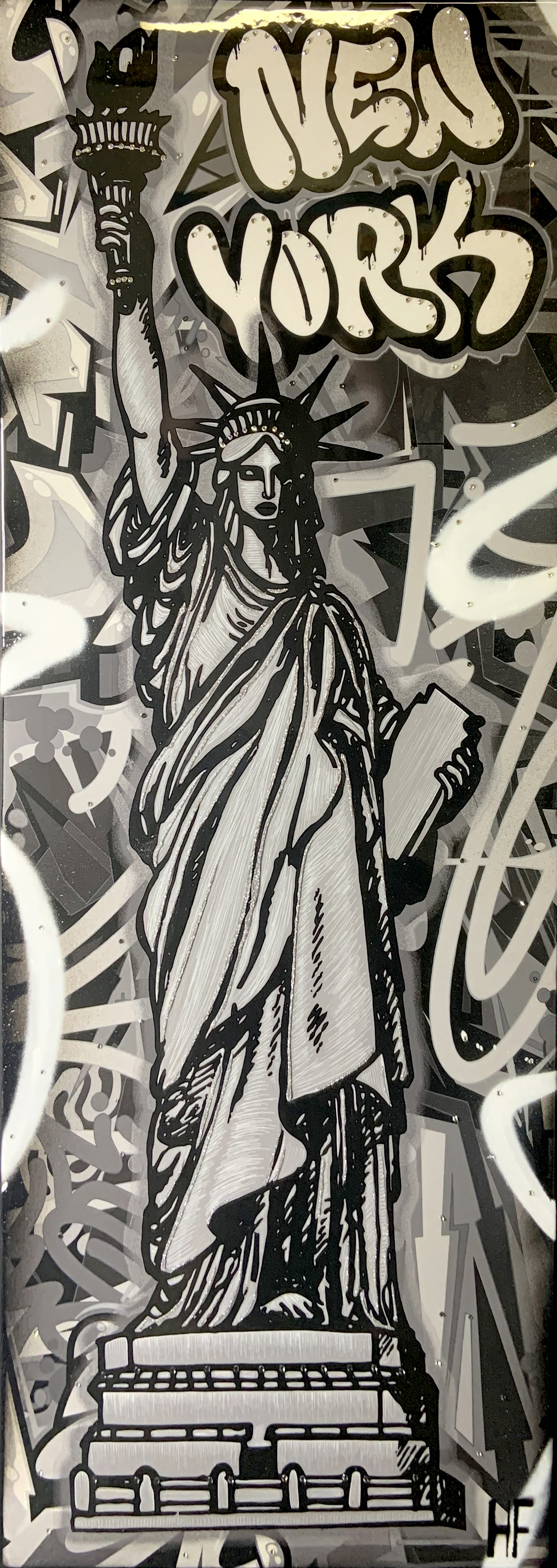 TALL STATUE NY TAG B&W BLACK